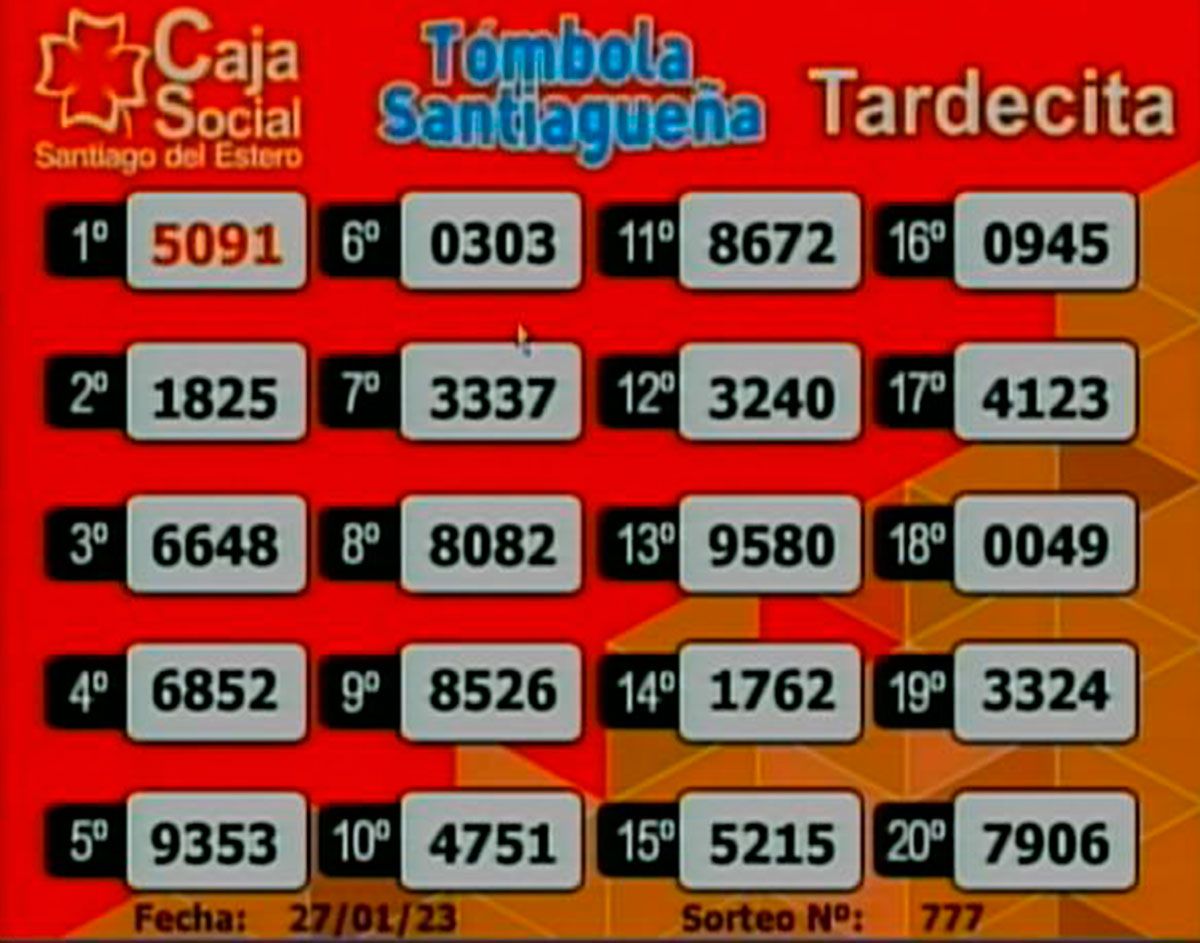 Este viernes 27 de enero del 2023, como todos los días, se llevó a cabo un nuevo sorteo de la Tómbola Santiagueña.