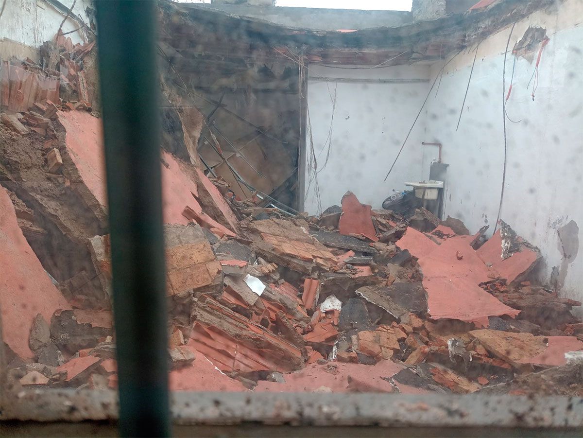 El hecho ocurrió esta mañana. Aparentemente la estructura habría cedido por el peso del agua acumulada por la tormenta.