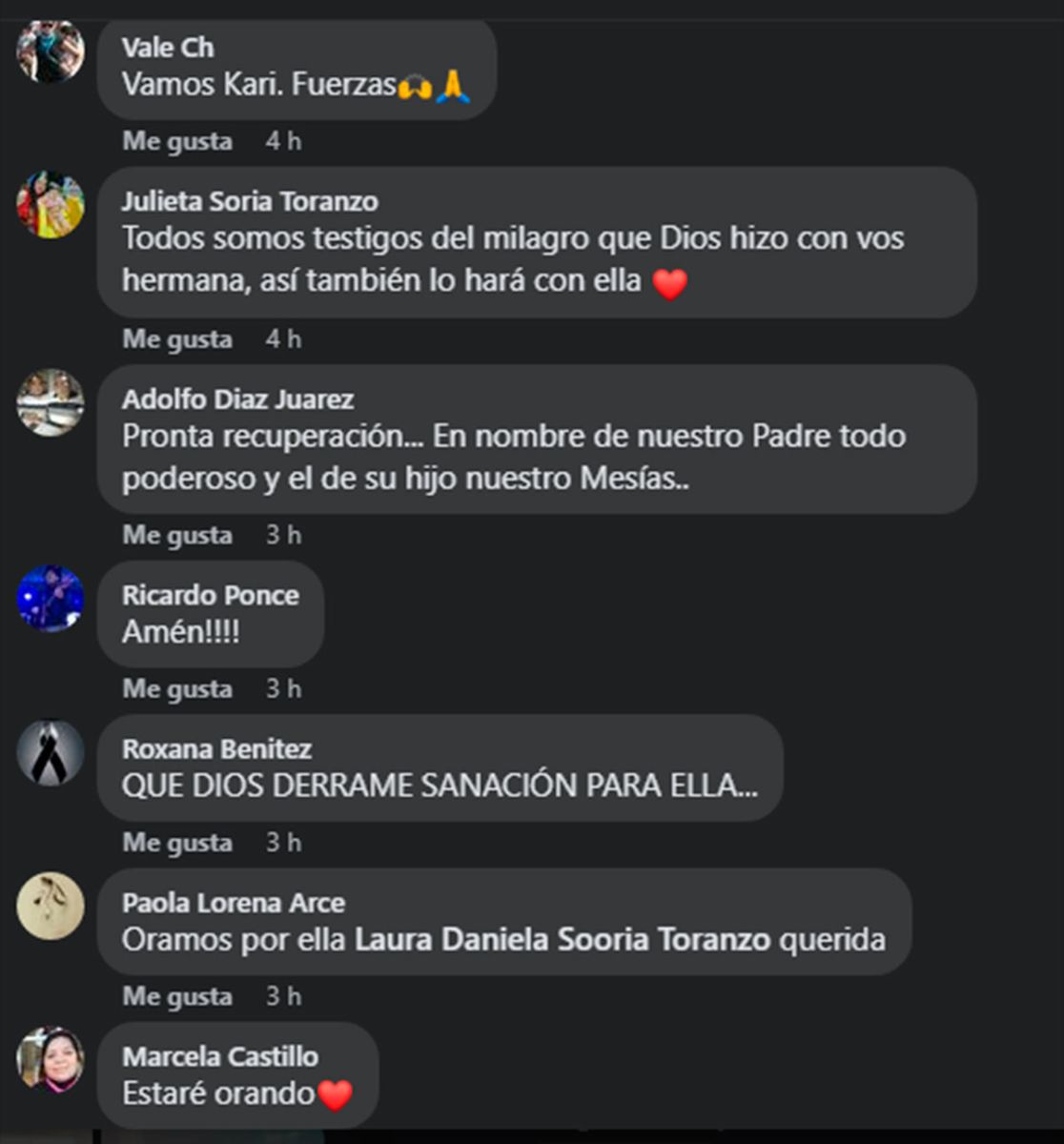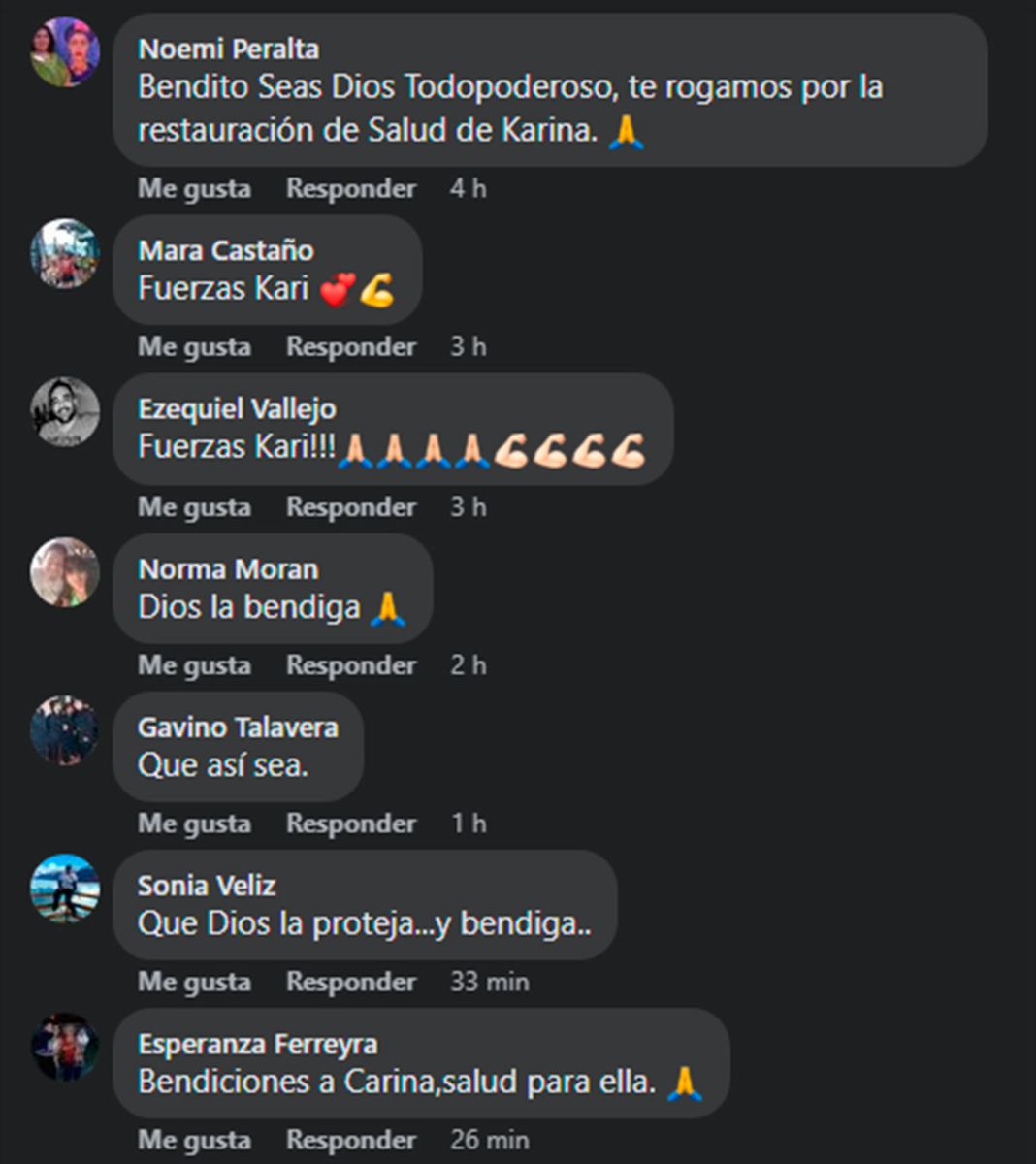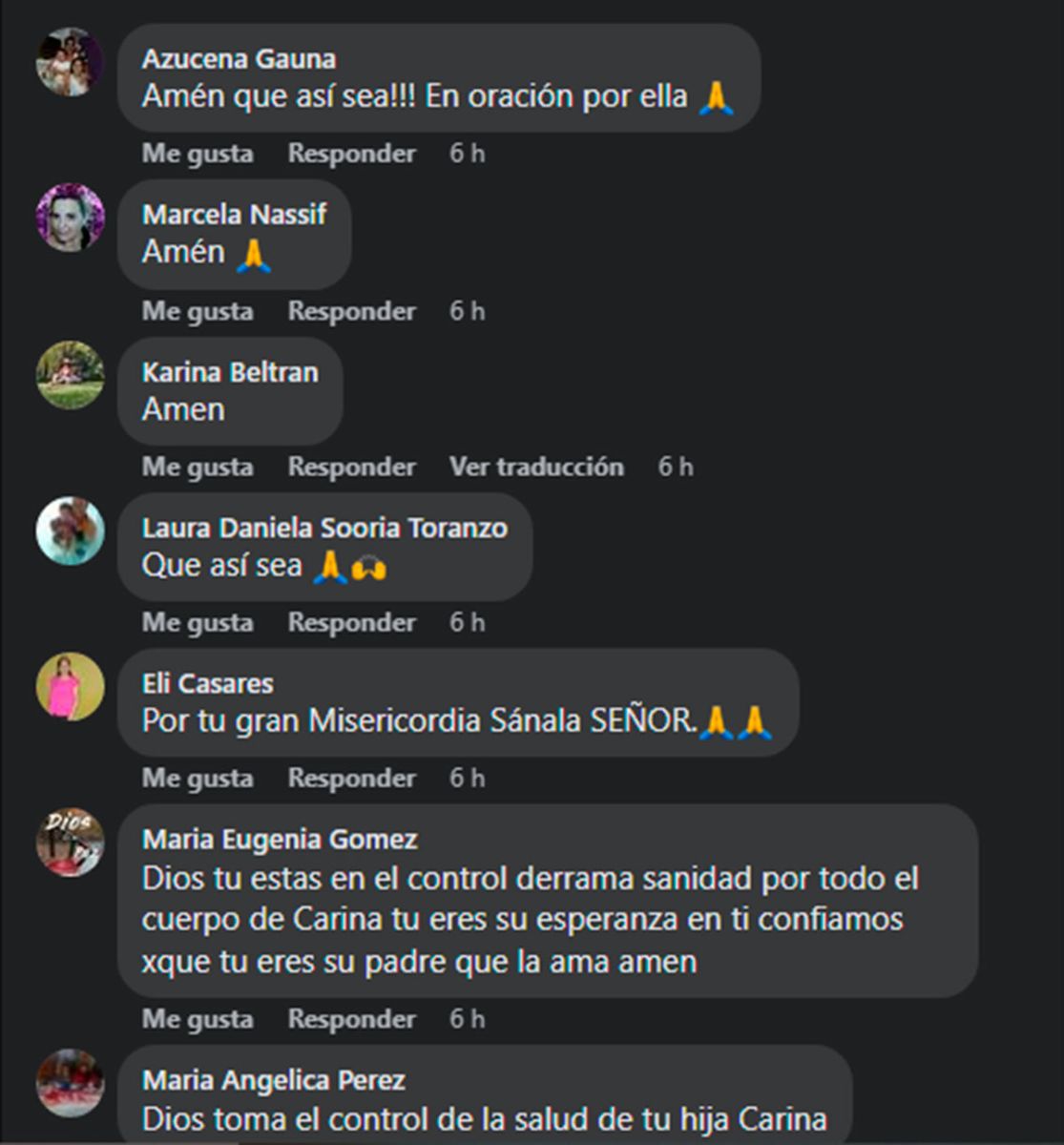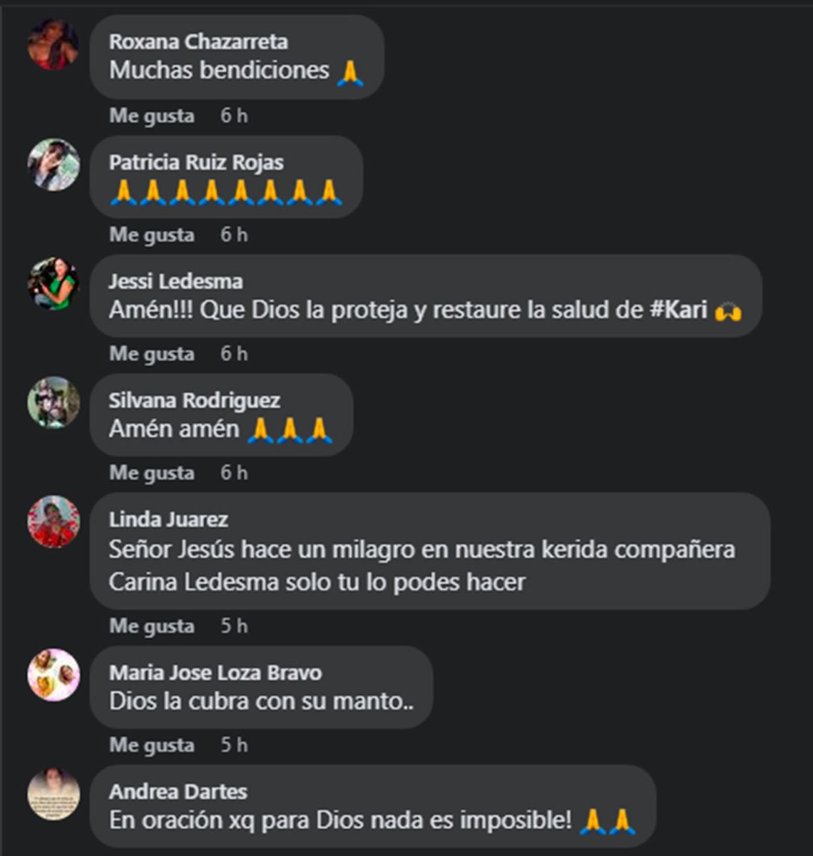 Familiares, amigos y compañeros de Carina publicaron en las redes sociales pedidos de cadenas de oración , debido al delicado estado de salud de la funcionaria policial.