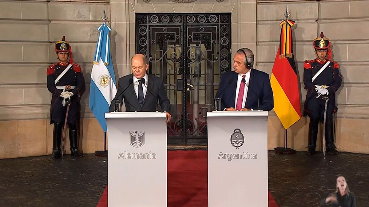 Por la noche, a las 20.30, se estimaba que el jefe de Estado y Scholz realizarán una declaración conjunta a la prensa en el Patio de Honor. Y a las 21, por último, ambos encabezarán, en el salón Libertador del Palacio San Martin, el cierre del encuentro empresarial con directivos de firmas alemanas y representantes de empresas argentinas. Mañana, el canciller viajará a Chile, y después a Brasil.