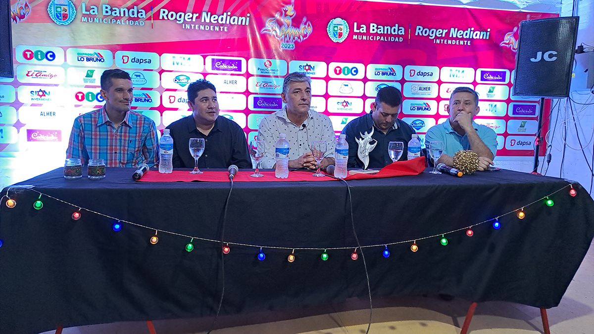 Una vez finalizado su espectáculo, el músico brindó una conferencia de prensa donde estuvo acompañado por el intendente de la ciudad de La Banda, Roger Nediani, con quien anunció de manera oficial el lanzamiento de la canción que representará al festival bandeño.
