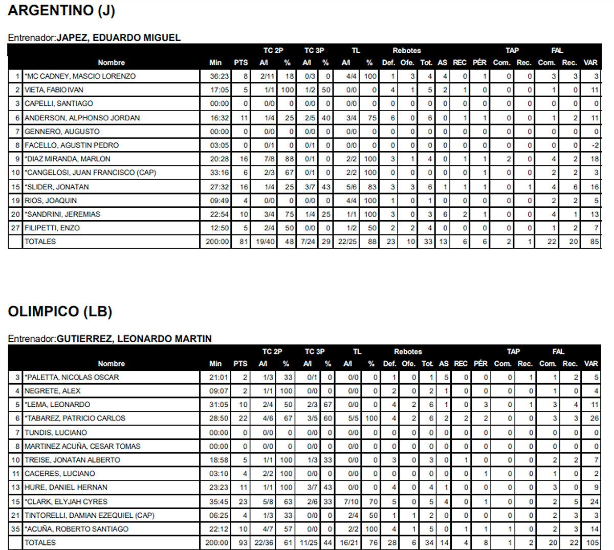 En el elenco juninense, en tanto, lo mejor llegó de la mano del pivote cubano Marlon Díaz Miranda, quien finalizó con un saldo de 16 unidades, 4 rebotes y un robo.