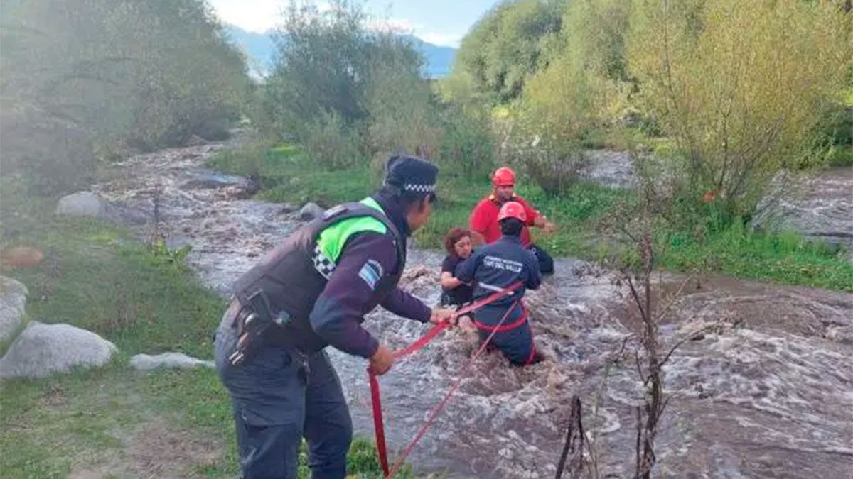 Los efectivos de la Comisaría Tafí del Valle, junto a bomberos voluntarios de esa localidad, lograron rescatar el pasado martes sana y salva a una mujer que había quedado atrapado en el río La Banda, en la villa turística.