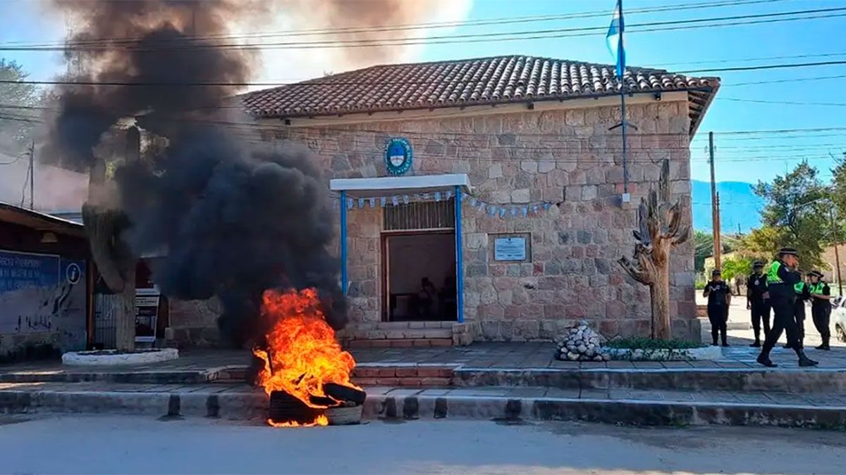 Vecinos cortaron el puente del río de Amaicha, situación que luego se trasladó hasta el frente del edificio comunal para exigir a las autoridades una pronta respuesta a sus reclamos.