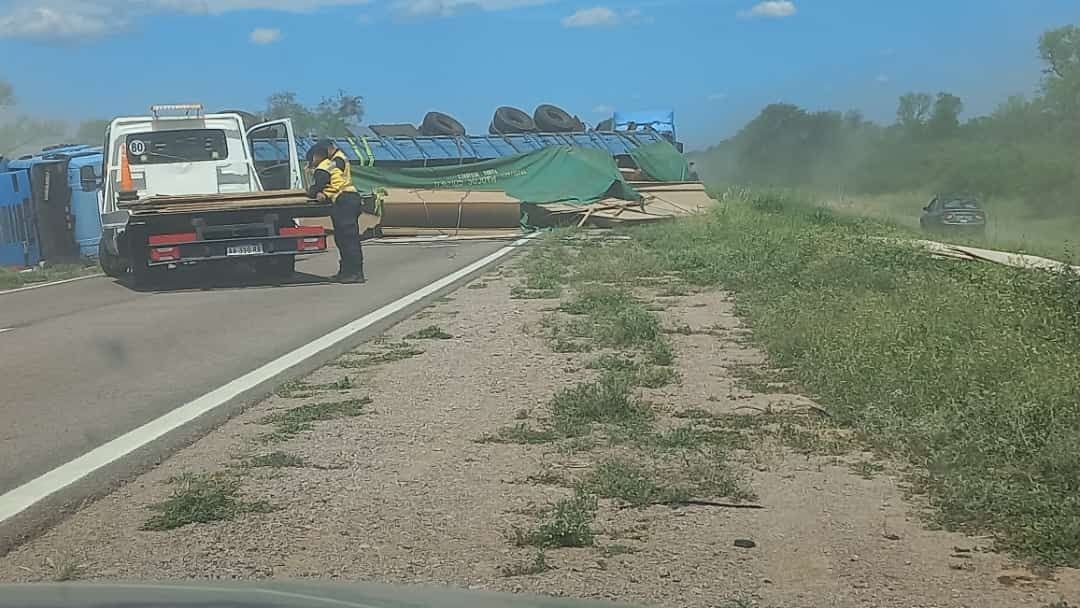 Por causas que se tratan de establecer, el conductor de un camión con acoplado, con carga de madera, protagonizó un violento vuelco sobre Ruta 34 a la altura de la localidad de Lugones.