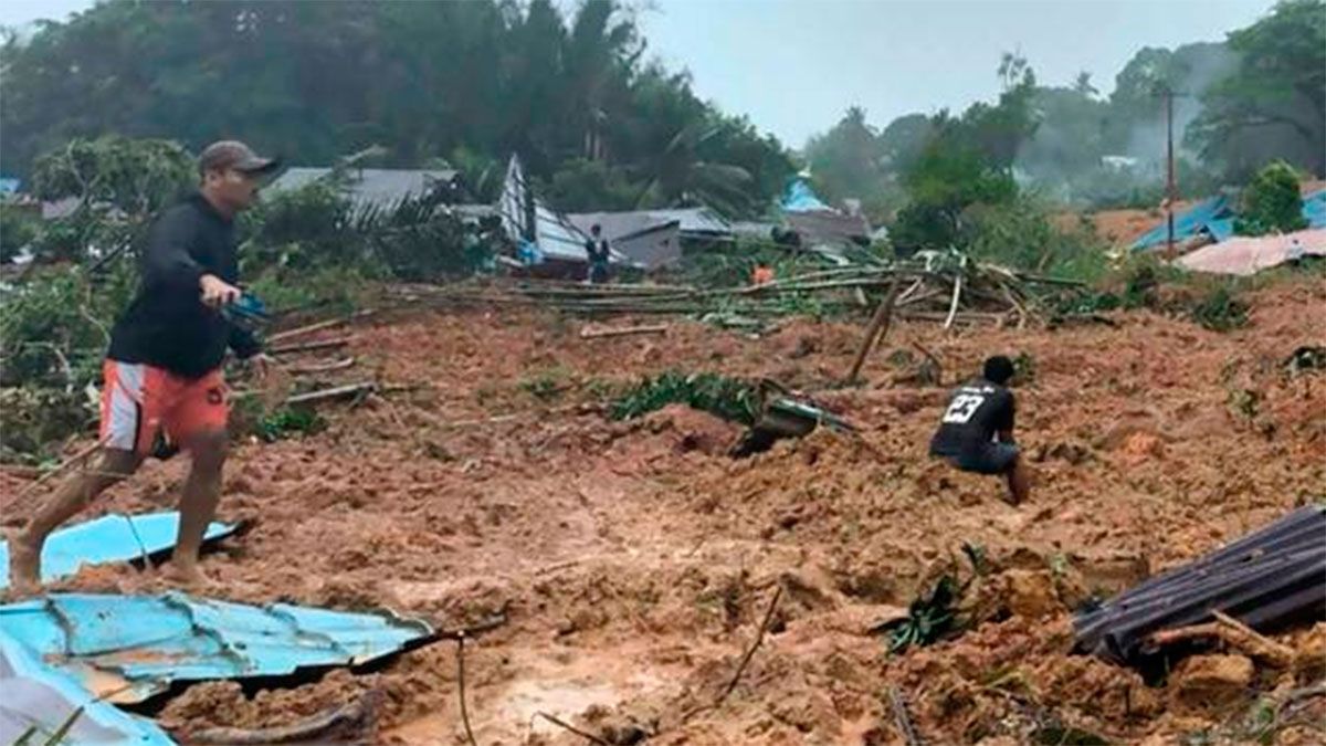 Las imágenes muestran cómo el barro y los escombros aplastaron y cubrieron por completo las casas que se encontraban cerca de un acantilado, en la isla de Serasan, entre Borneo y Malasia continental.