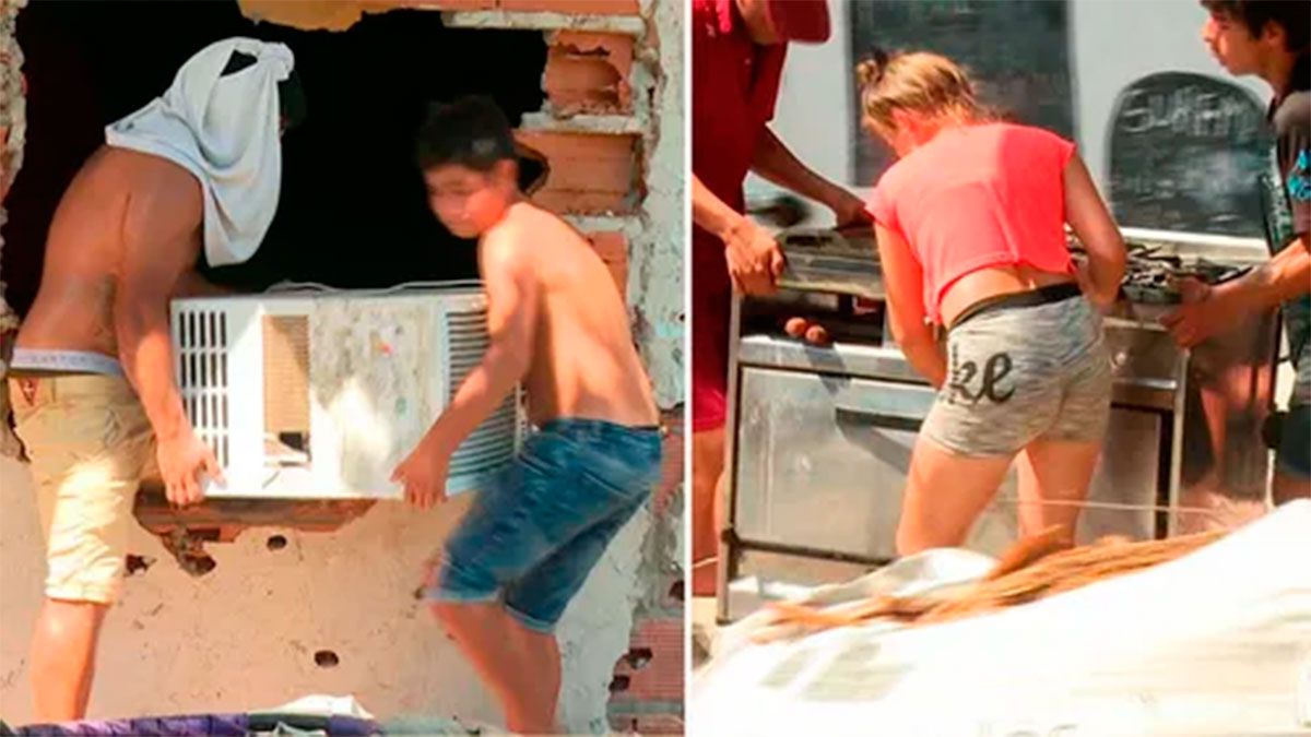 Luego, una vez despejada la vivienda, se hicieron con todo lo que había dentro: desde el inodoro hasta un peluche gigante. Todo quedó registrado por las cámaras de TN en el lugar, que mostraron en vivo el saqueo.