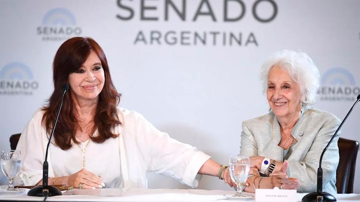 La mención fue recibida por las abuelas Estela de Carlotto, Sonia Torres de Parodi, Carmen Ledda Barreiro y Buscarita Imperí Roa. Del acto participarón también los ministros del Interior, Eduardo, “Wado” de Pedro -que también está anotado como posible candidato a presidente del oficialismo-; de Defensa, Jorge Taiana; Justicia, Martín Soria; Cultura, Tristán Bauer y el Secretario de Derechos Humanos, Horacio Pietragalla. “Presidenta, Cristina presidenta”, cantaron los funcionarios.