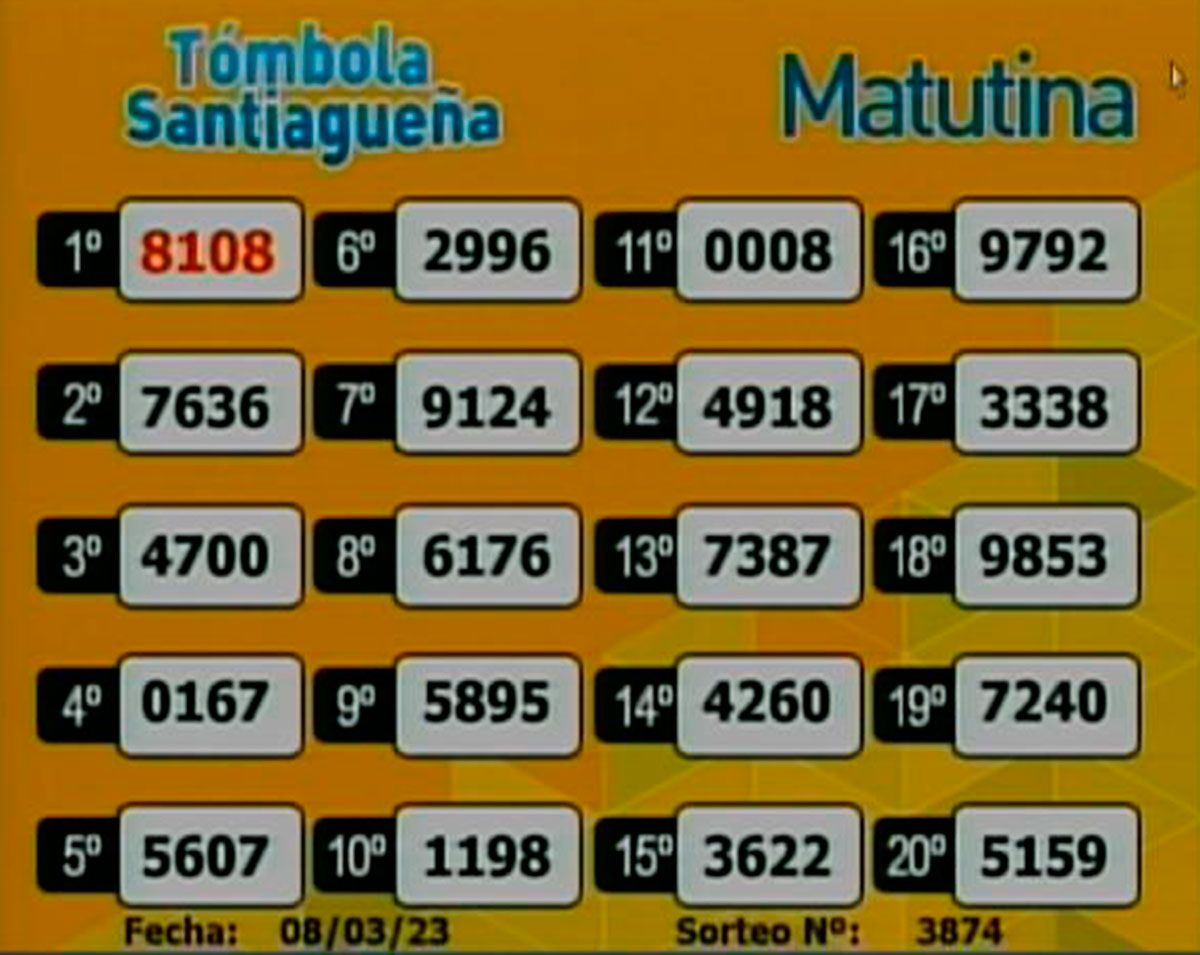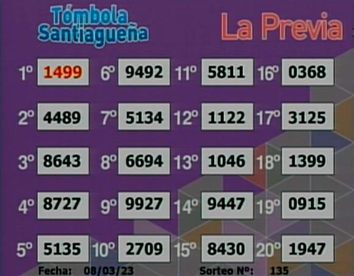 Este miércoles 08 de marzo del 2023, como todos los días, se llevó a cabo un nuevo sorteo de la Tómbola Santiagueña.