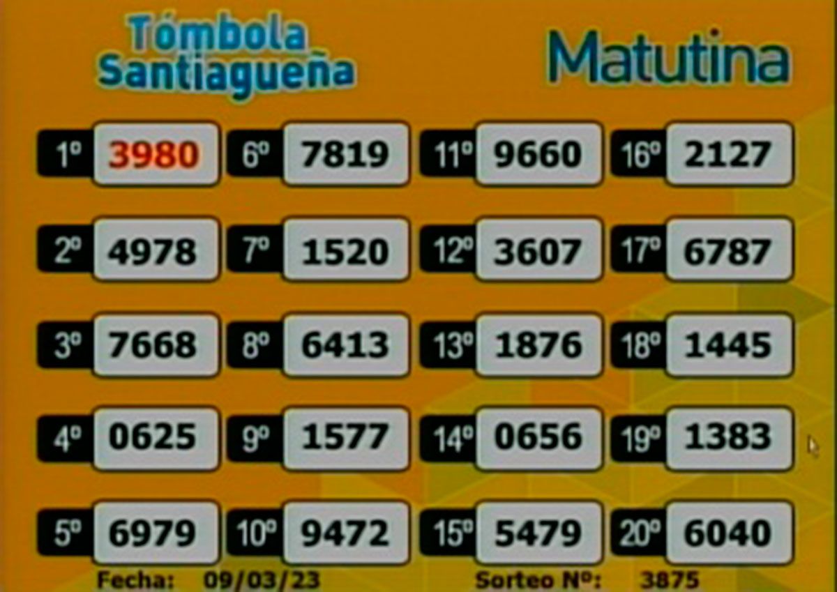 En la edición Matutina, el primer premio correspondió al número 3980. En el Libro de los Sueños, el 80 corresponde “La Bocha”.