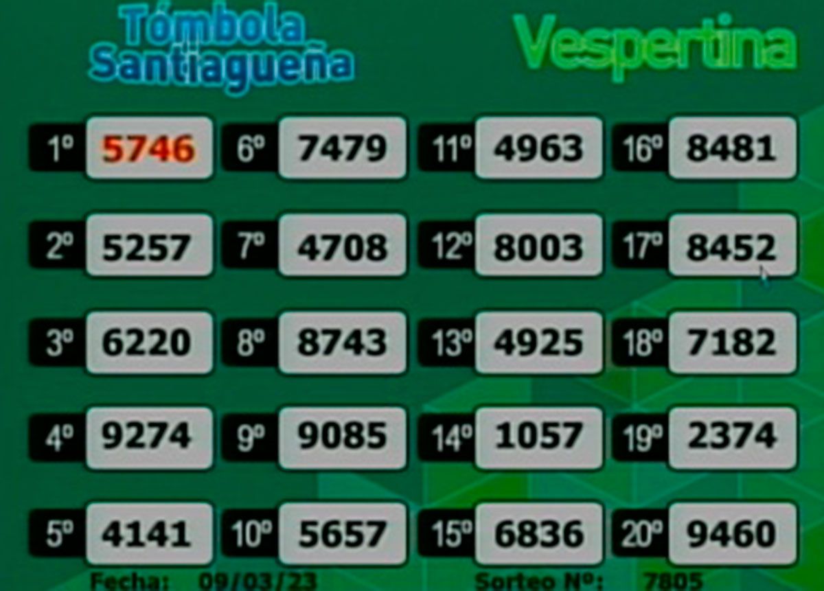 Todos los números del segundo sorteo de este jueves 9 de marzo de 2023:
