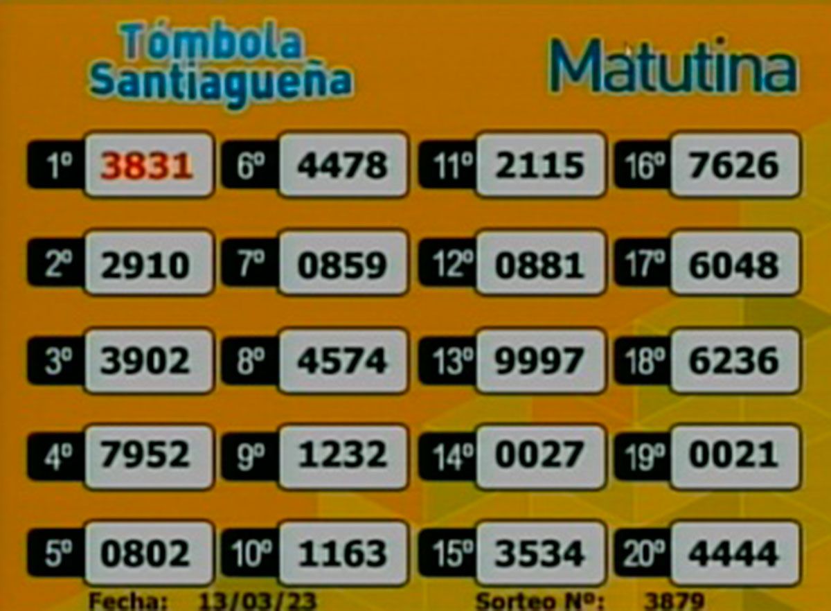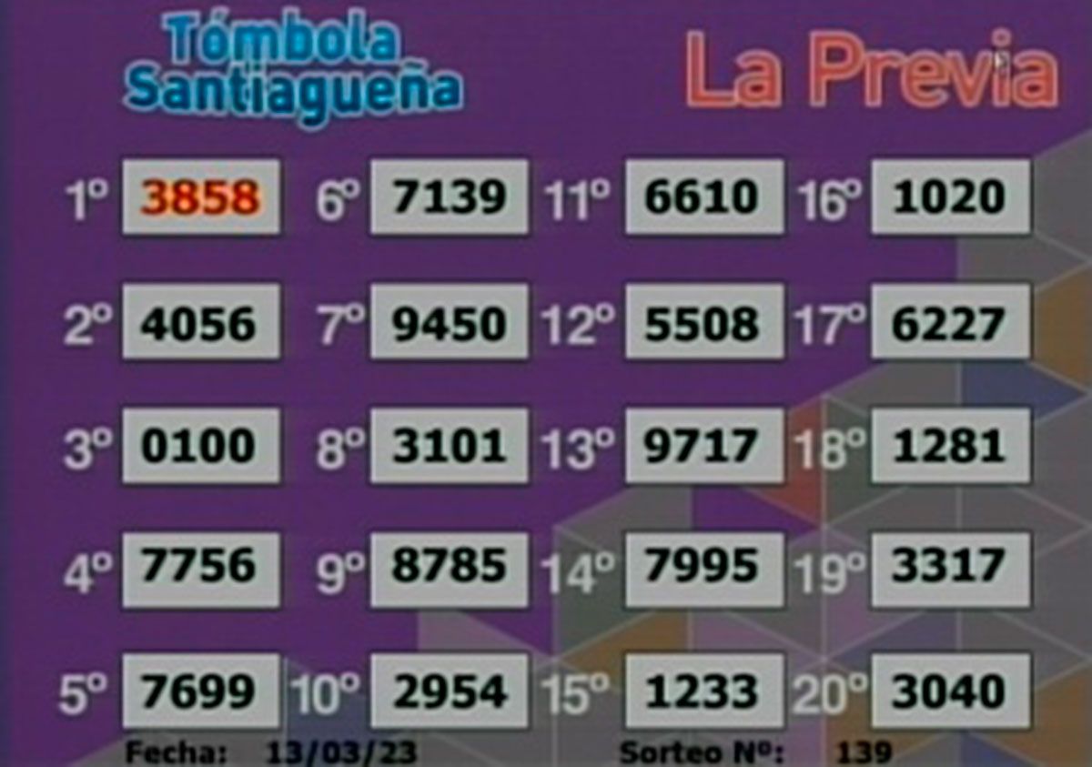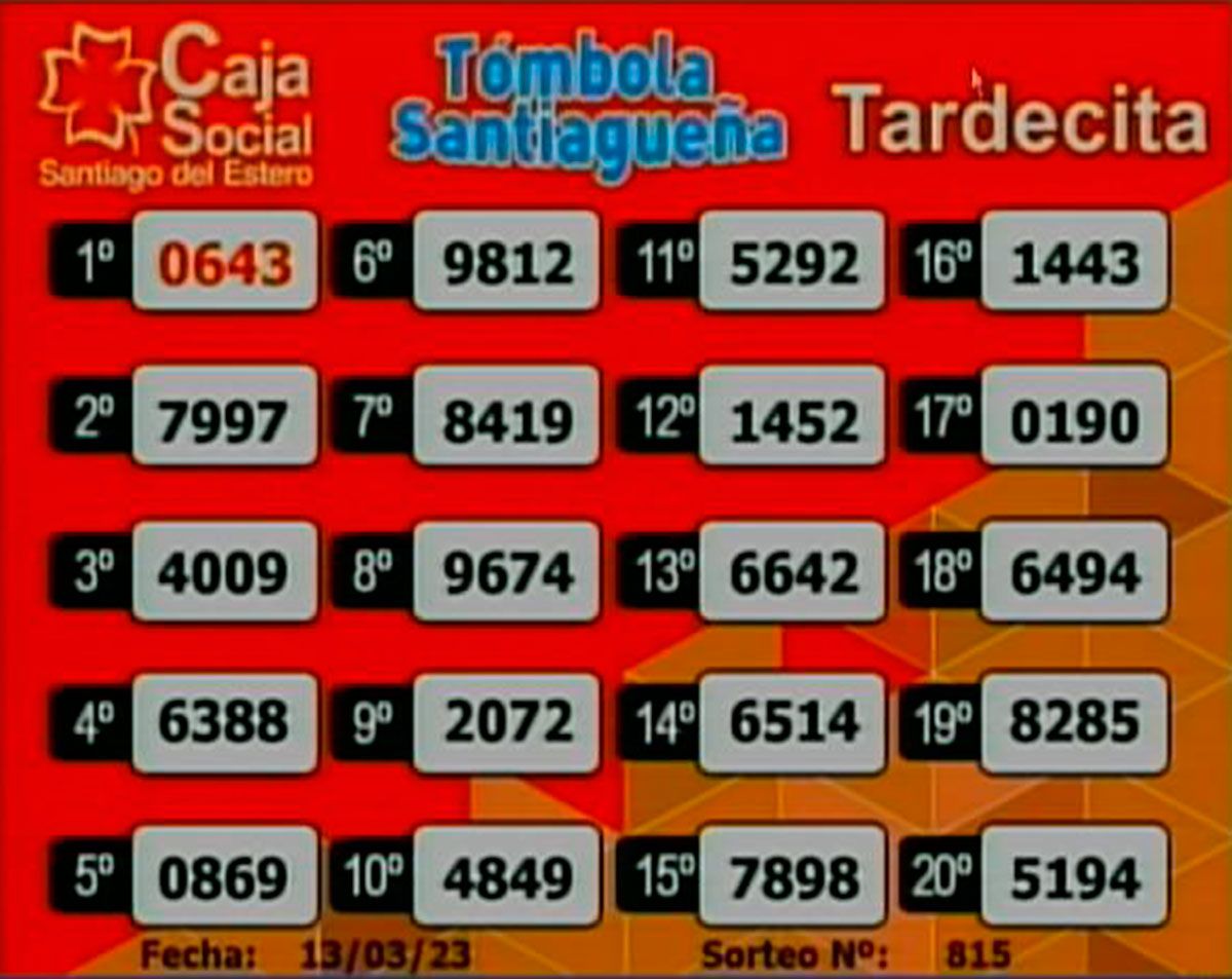 Este lunes 13 de marzo del 2023, como todos los días, se llevó a cabo un nuevo sorteo de la Tómbola Santiagueña.