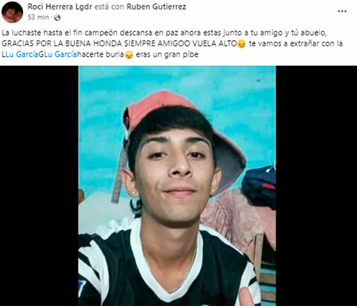 Pese a los esfuerzos de los médicos, Rubén Gutiérrez, el joven de 18 años que se accidentó el pasado domingo 26 de febrero durante un siniestro vial en el ingreso del dique Los Quiroga, terminó perdiendo la vida este lunes.
