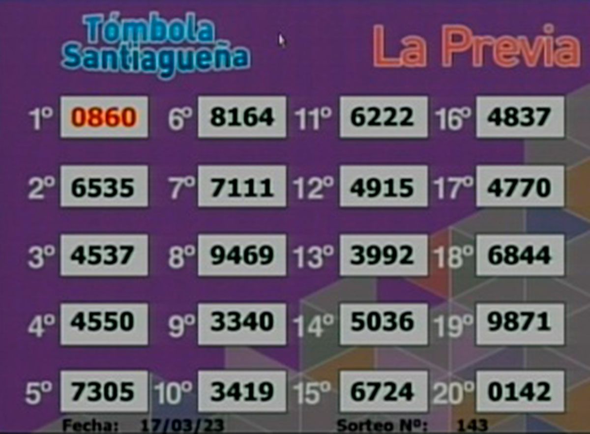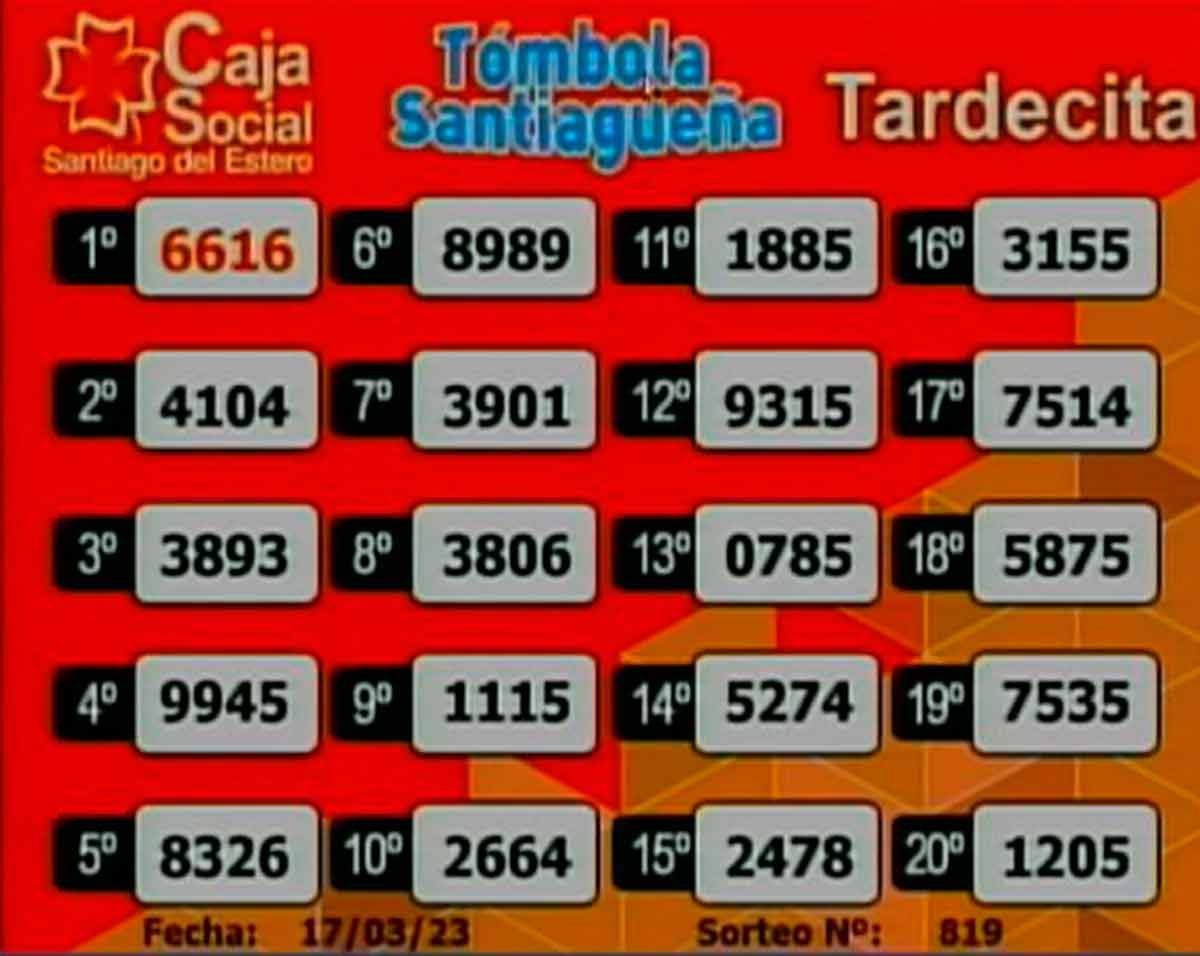 Este viernes 17 de marzo del 2023, como todos los días, se llevó a cabo un nuevo sorteo de la Tómbola Santiagueña.