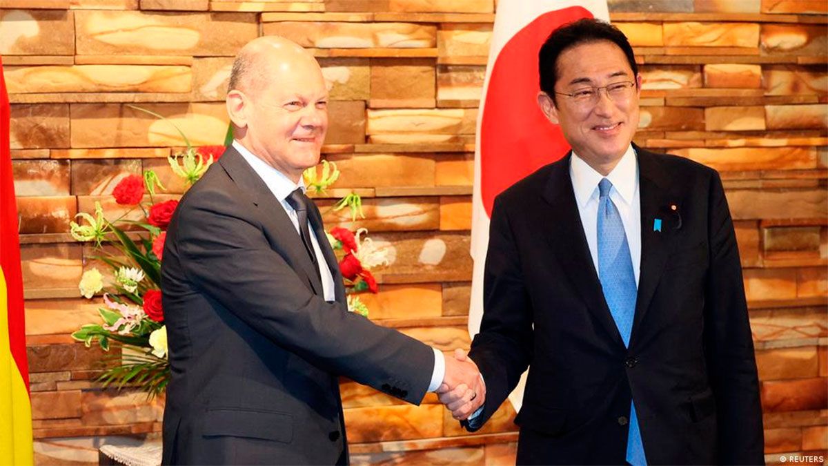 Los jefes de Gobierno de Japón, Fumio Kishida, y Alemania, Olaf Scholz, se reunieron hoy en Tokio y acordaron reforzar los lazos de cooperación en materia de seguridad y defensa, así como también en el suministro de materias primas.
