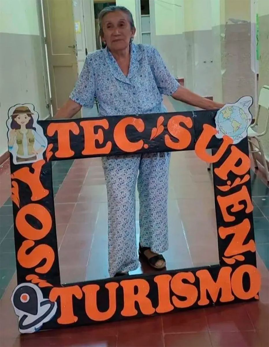 Martita Carrizo, una catamarqueña de 79 años de edad, rindió su última materia en el Instituto Chavarría en Belén, Catamarca y obtuvo su titulo de Técnica Superior en Turismo.