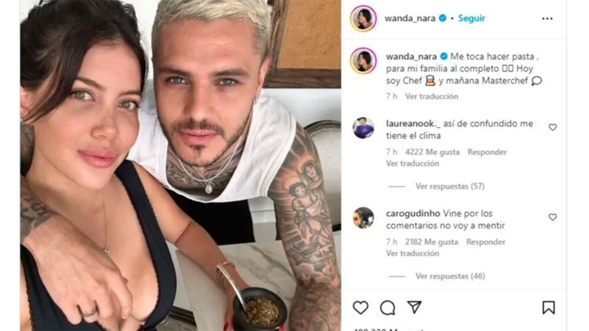 Como se mencionó, Wanda aprovechó al máximo su tiempo en familia antes de regresar al país y escribió en la imagen junto a Icardi: "Me toca hacer pasta para mi familia al completo. Hoy soy chef y mañana Masterchef".