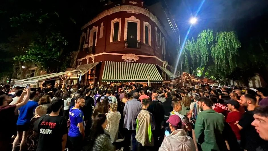 La noticia de su presencia en la esquina de Guatemala y Gurruchaga no tardó en diseminarse velozmente y decenas de hinchas comenzaron a copar el lugar cantando por su ídolo desde afuera.