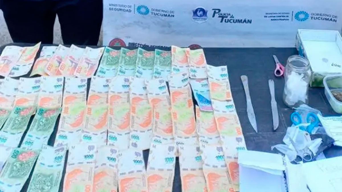 Durante el procedimiento los efectivos encontraron 8 gramos de Marihuana,7 semillas de cannabis,2 hojas de papel con restos de cocaína, 2 cuchillos con restos de cocaína, 3 tijeras con restos de una sustancia blanca, además de recortes plásticos varios, documentación y 90.000 pesos en efectivo.