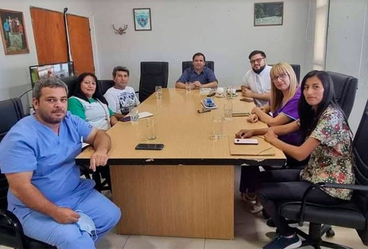 El mandatario recibió en el salón de acuerdos de la comuna al director del Hospital Guillermo Rawson, Dr. Darío Ocaranza, quien estuvo acompañado por profesionales del nosocomio. También fue parte del encuentro personal del Centro de Atención Primaria de la Salud “Emilio Juri” y responsables del área Fumigación.