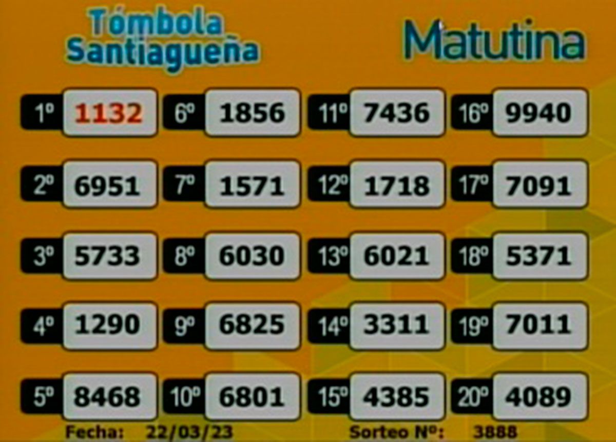Este miércoles 22 de marzo del 2023, como todos los días, se llevó a cabo un nuevo sorteo de la Tómbola Santiagueña.