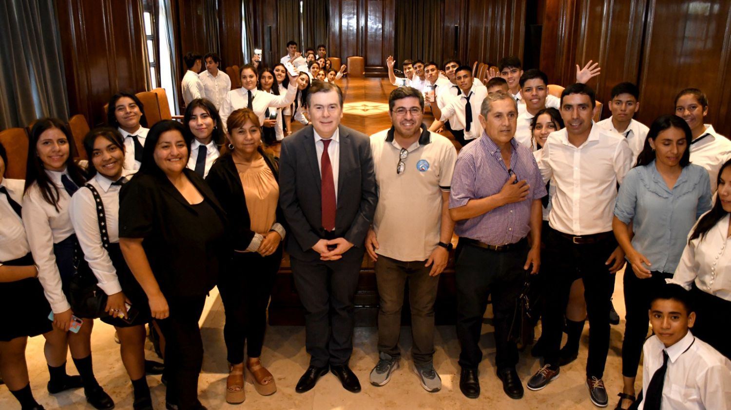 El encuentro tuvo lugar en el salón de acuerdos de Casa de Gobierno, donde los docentes que acompañaban a la delegación expresaron su agradecimiento por el apoyo y el acompañamiento para permitir a los jóvenes del interior vivir esta experiencia de manera totalmente gratuita que “contribuye al proceso de aprendizaje”.