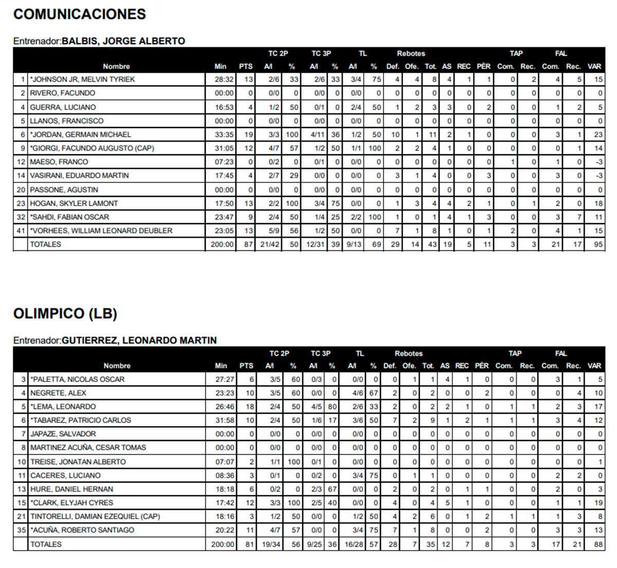Olímpico perdió en su visita a Comunicaciones por 87-81 en una nueva noche de acción en la Liga Nacional de Básquet.