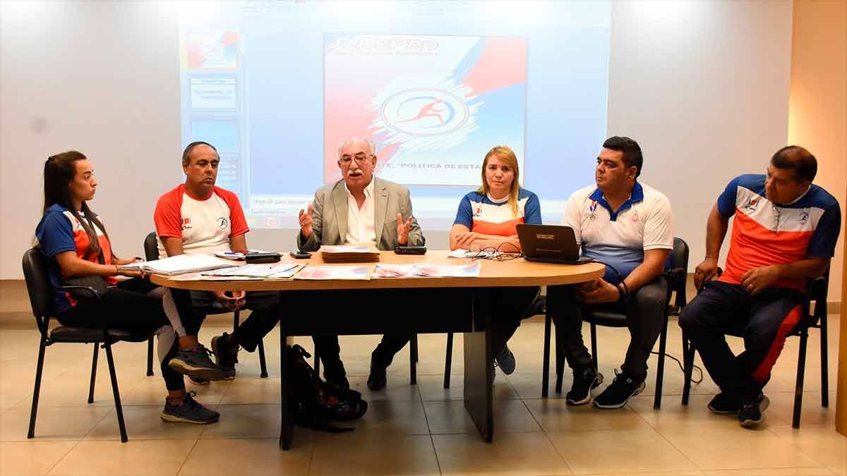 La reunión se desarrolló en el salón auditorio del Polideportivo Provincial, encabezada por el secretario de Deportes de la provincia, Carlos Dapello, quien estuvo acompañado por la coordinadora general del Judepro, Sara Radi y de coordinadores regionales.
