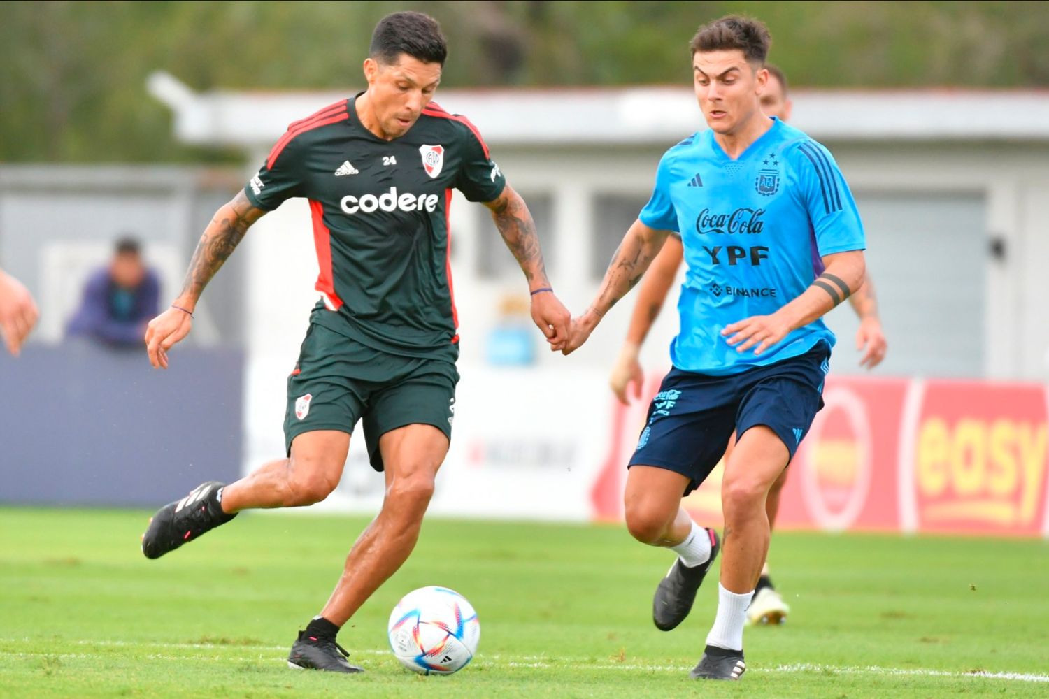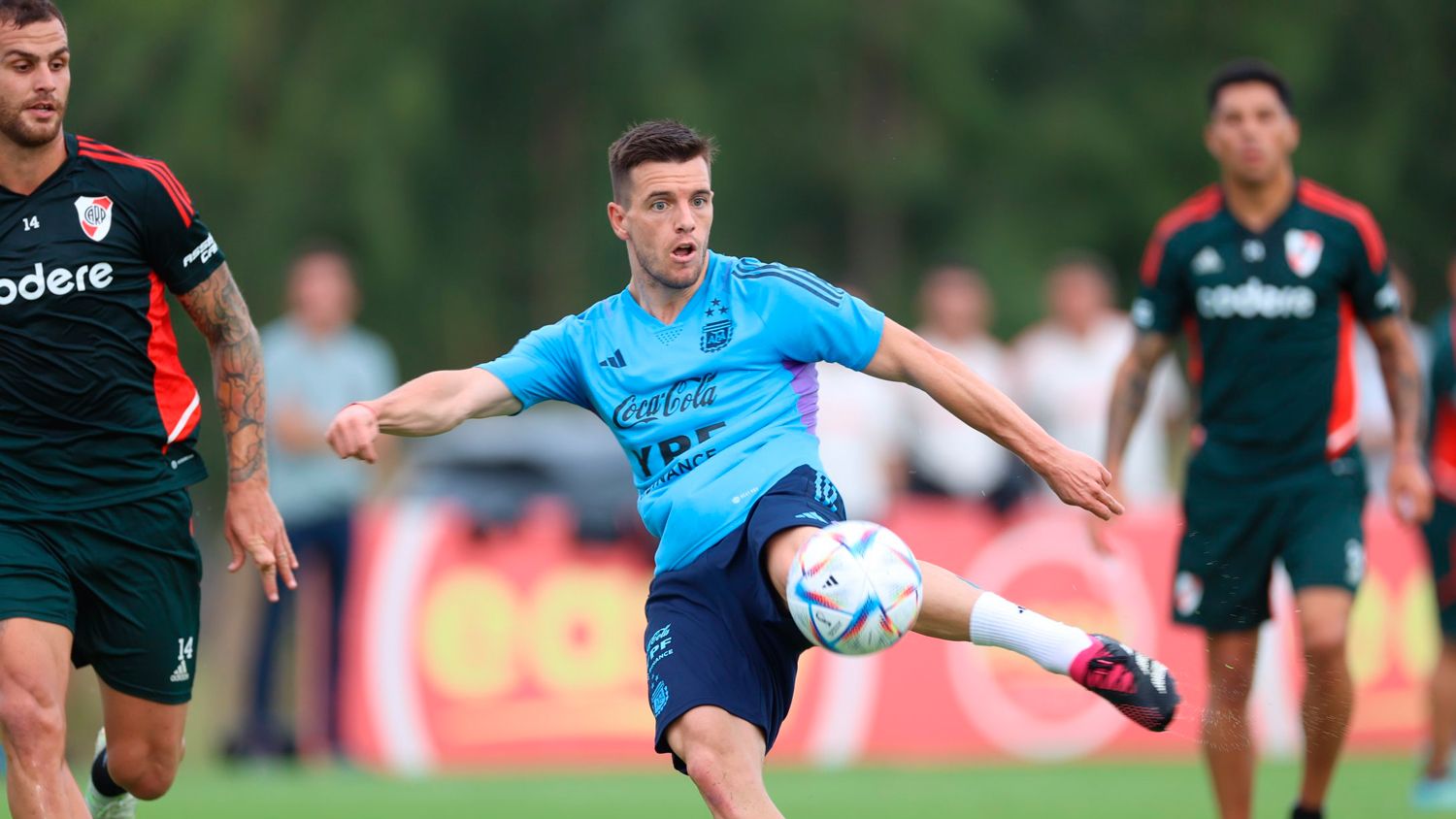 Tras la gran fiesta que se vivió en el estadio Monumental para celebrar la obtención de la Copa del Mundo, el plantel de la Selección Argentina volvió al trabajo este viernes en el predio de la AFA en donde realizó un partido amistoso ante River Plate.