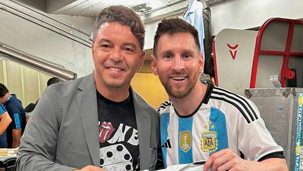 La frutilla del postre para los fanáticos riverplatenses se dio con la “foto perfecta”, como la definió la propia institución. Messi recibió la número 10 del Millonario y posó con el presidente Brito, pero también con el entrenador más ganador en la historia del club: Marcelo Gallardo. El Muñeco volvió a su casa a pocos meses de terminar su fructífero ciclo y siguió de cerca el encuentro de Argentina. Al finalizar, posó con Leo y la 10 de River. “La foto perfecta existe”, titularon en los perfiles oficiales del club. Uno de los que reaccionó al posteo fue Matías Gallardo, uno de los hijos del técnico y futbolista de reserva del club, que posteó un emoji con corazones en sus ojos.,