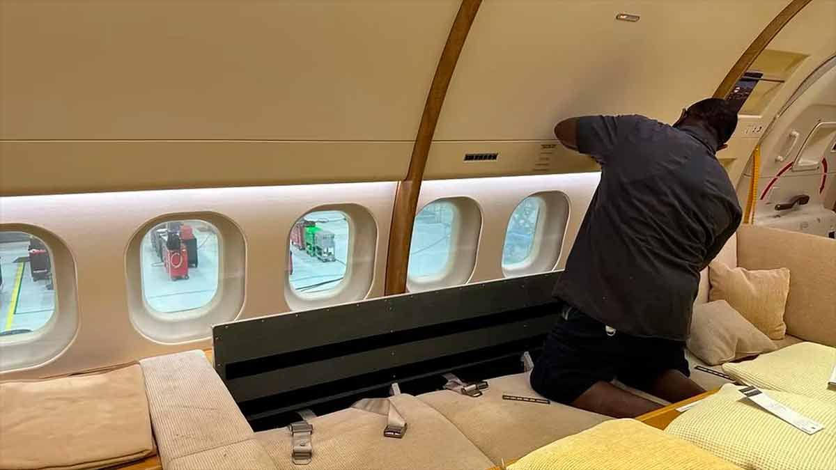 La empresa dueña del avión, C&L Aviatión Group, había dicho que iba a tener lista la unidad para la semana pasada, pero esto no ocurrió. No son tareas de reparación sencillas. A modo de ejemplo, TN pudo saber que se rompió el sistema de entretenimiento y debió enviarse a Francia. A su regreso, no estaba en óptimas condiciones, por lo que continúan las tareas para ponerlo a punto. Todas estas reparaciones se realizan en los talleres de Citadel Completions.
