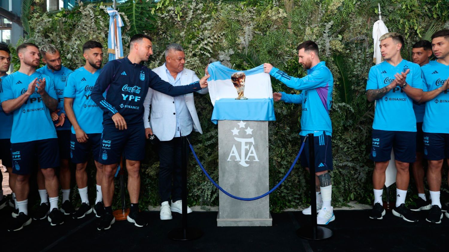 Después del acto, en el que los campeones del mundo intercambiaron saludos y fotos con los presentes, el plantel de Argentina inició el último entrenamiento de la semana con vistas al amistoso del martes próximo ante Curazao en el Estadio Único Madre de Ciudades de Santiago del Estero.