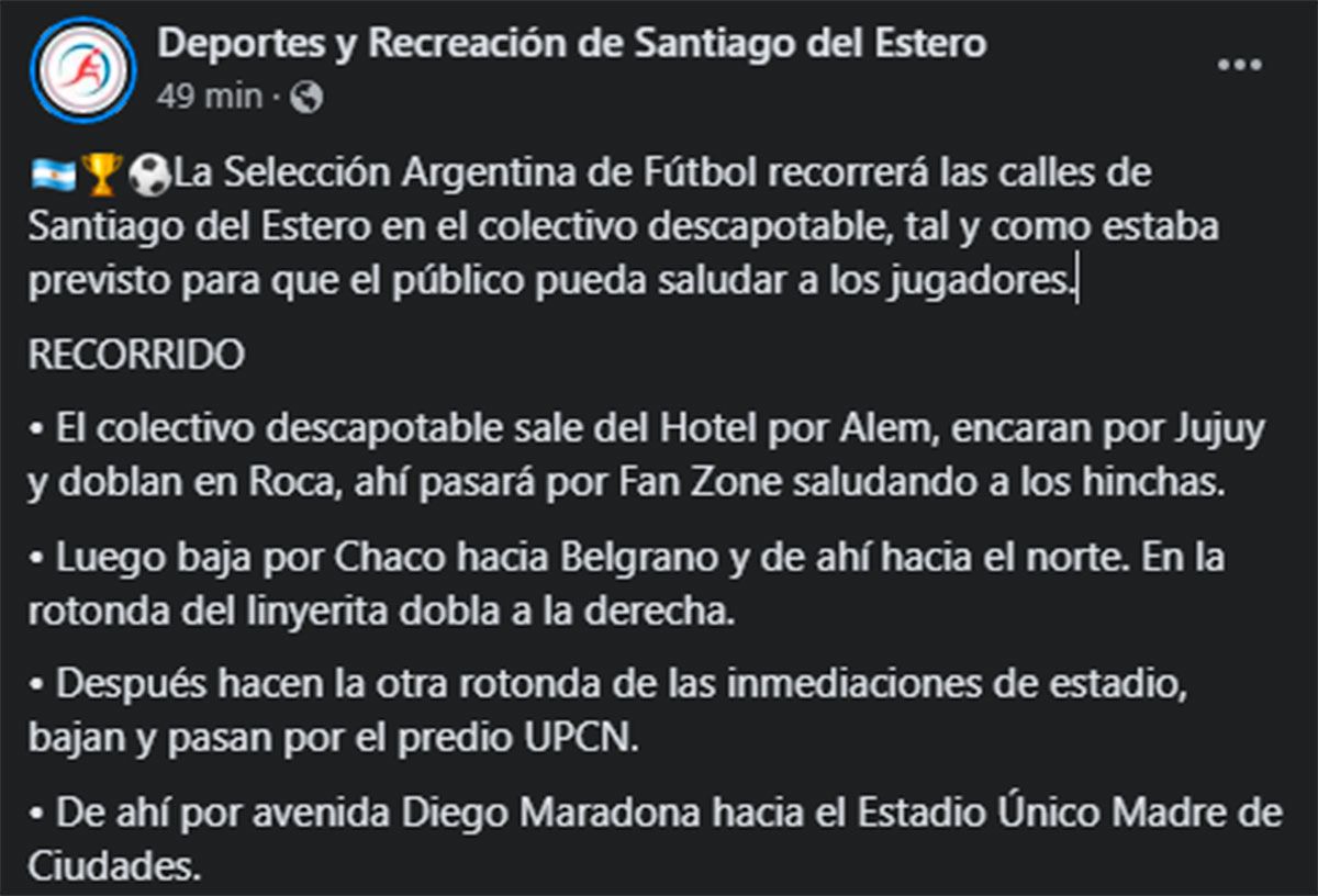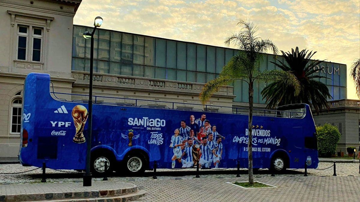 La Selección Argentina llegó a Santiago del Estero y recorrerá las calles de la Madre de Ciudades desde un colectivo descapotable. De esta manera todos los santiagueños podrán saludarlos y ver a los campeones del mundo.