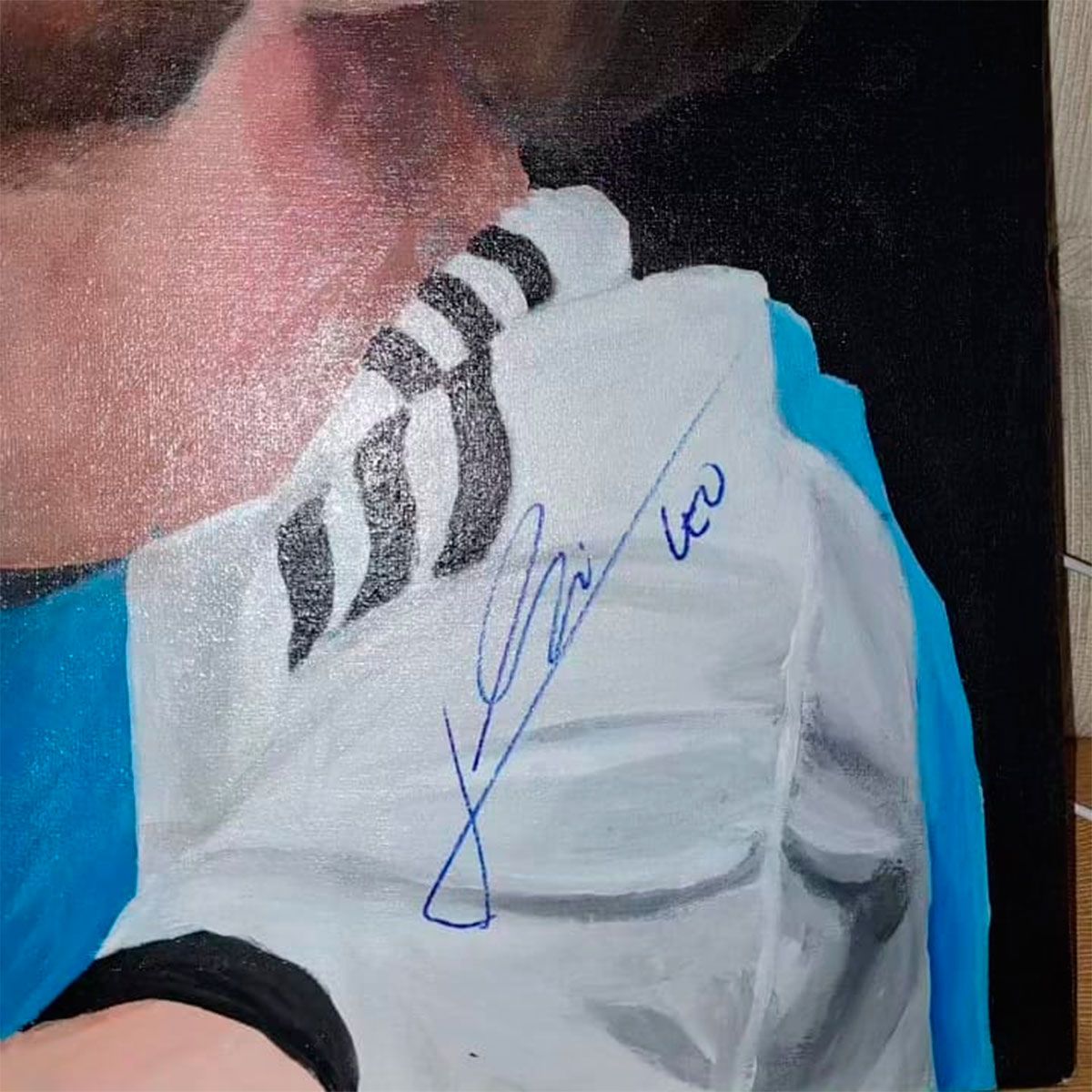 Así fue como al cabo de unos minutos, el hombre regresó con la obra pero con un detalle especial, tenía la firma de Lionel Messi. Tal fue la alegría de Marianella y del resto de los hinchas presentes que se gritó como un gol, además, el dirigente le regaló un par de entradas para que pudiera asistir al partido.