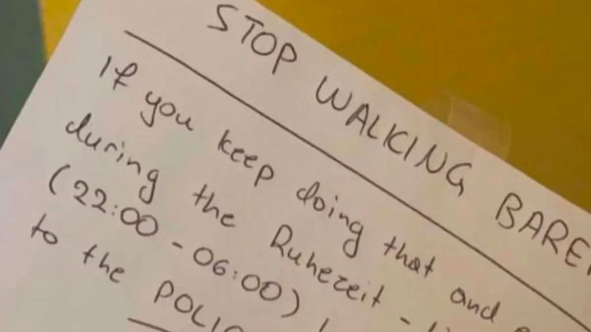 A continuación, en el resto del mensaje se leía: “Si seguís haciendo eso, y especialmente durante el ruhezeit (tiempo de descanso) -silencio nocturno (22.00-06.00)-, te voy a denunciar a la Policía por alteración del orden público”.