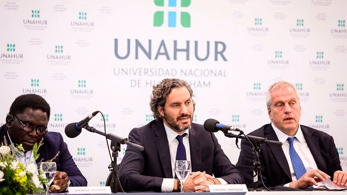"Argentina cree que el multilateralismo es la respuesta acertada y que la integración es la respuesta colectiva al individualismo, a las medidas unilaterales. Quienes llevan medidas unilaterales son los poderosos, los países y continentes como los nuestros, necesitamos del multilateralismo, de la comunidad organizada" dijo Cafiero en el evento realizado en la Universidad Nacional de Hurlingham, en el que también estuvo el ministro de Educación, Jaime Perczyk.