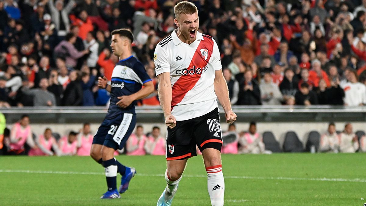 Y fue entonces cuando a los 20 minutos Rodrigo Aliendro marcó su primer gol con la camiseta de River después de 27 partidos mediante un cabezazo hacia atrás que dejó fuera de acción al arquero Nelson Insfrán. La última vez que había convertido fue el 6 de noviembre de 2021 en otro 3 a 0 sobre Platense, jugando para Colón.