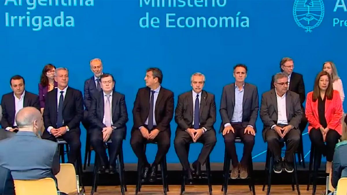 Luego del discurso de Cristina Kirchner en La Plata, Alberto Fernández se mostró este viernes junto a Sergio Massa y un grupo de gobernadores en el anuncio del Plan Integral Argentina Irrigada, destinado a mejorar el riego y auxiliar a la producción agrícola, afectada por la sequía que afecta a la Argentina.