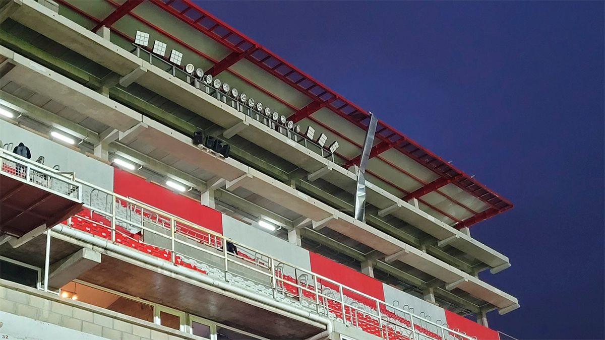 Las ráfagas de viento que azotaron a la provincia de Santa Fe. En este caso, se desprendió una canaleta en el Estadio 15 de abril y eso atentó contra las garantías de seguridad.