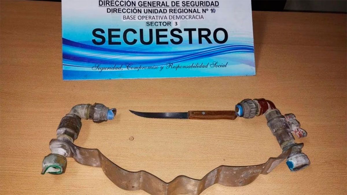 Cuando interceptaron al sujeto, encontraron dentro de su mochila un cuchillo tipo sierrita y caños correspondientes al elemento sustraído.