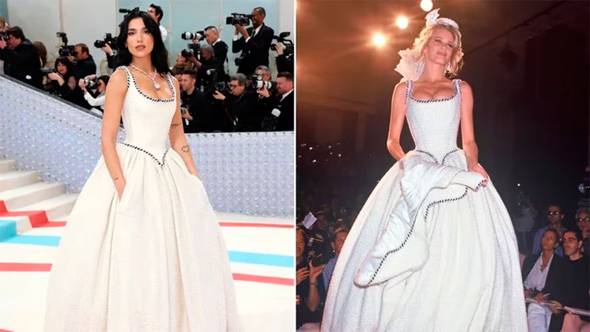 “Espectacular vestido de Dua lipa. Clásico vestido de época con volumen y excelente corsetería, divina. Aunque como icono de moda y basada en el emblema Lagerfeld hubiera preferido un poco más de diseño. Increíble tributo by Chanel house. Puntaje: 8″, sumó Patricia Profumo.