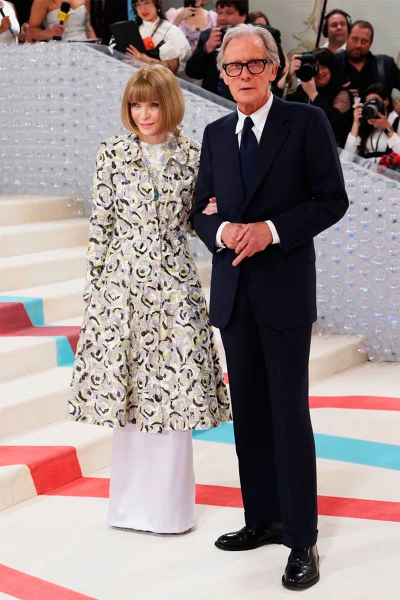 Sobre los looks de Anna Wintour y Bill Nighy, Fernández consideró: “Me parece que Anna está correcta. Ella siempre con su estilo. Tal vez para esta gala me hubiese jugado un poco más. Me encanta. Me parece que siempre ella da el toque de elegancia y distinción. Me gusta la silueta con ese tapado más de lo street o de calle y abajo la pollera más de noche y alta costura”.