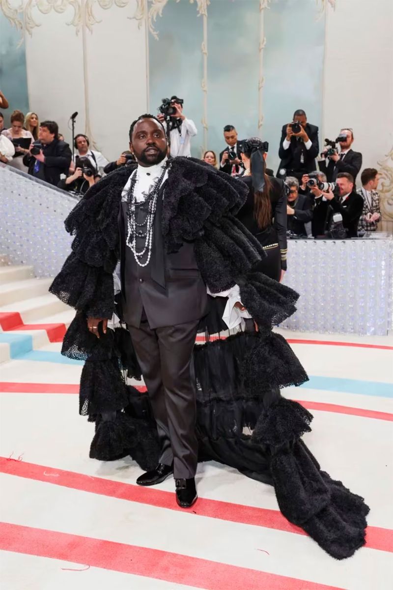 En tanto, Profumo aseveró: “Muy excéntrico y monarquico. Excelente combinación de texturas ideales para esta gala. Me encantó la elección del traje con camisa impoluta en blanco, collares y la majestuosidad de su capa acompañante en volados de encaje sellaron su Lagerfeld look”.