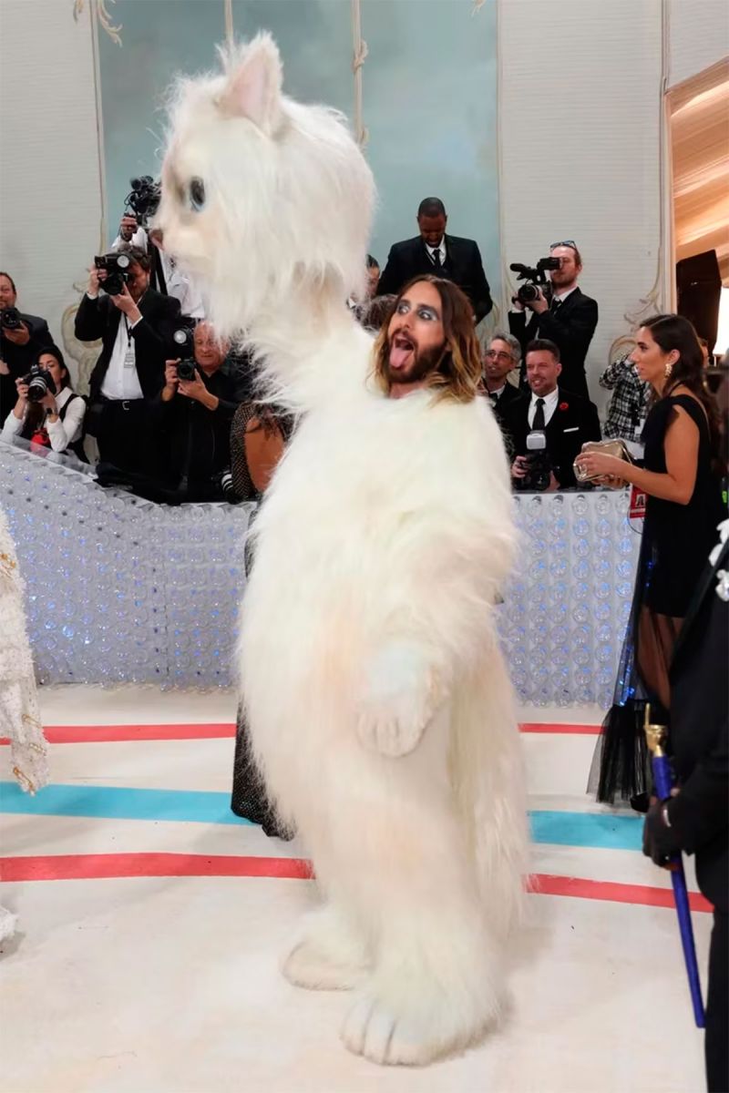 Profumo desaprobó el look de Jared Leto: “Honestamente, no me gusta para nada el outfit de Jared, lejos de estar vestido para una gala está vestido para el carnaval de Venecia. Vestido literalmente con un traje de disfraz de gato no pareciera cumplir con la temática o el dress code. Habría que preguntarle qué quiso interpretar con este significativo outfit”.