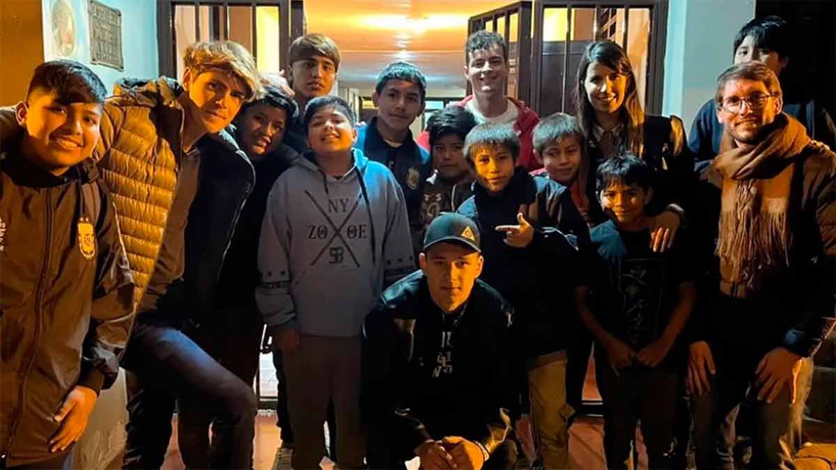 “¡Hoy tuvimos la visita de un gran amigo!”, escribió la ONG de Salta junto a una foto de Marcos posando con los chicos del albergue, quienes reciben alimentación y apoyo escolar gracias al apoyo económico de los donantes.