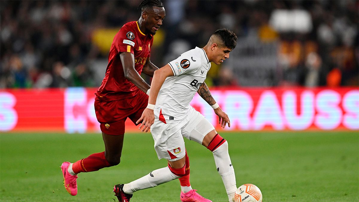 A su vez, en el estadio Olímpico de la capital italiana, Roma, donde el cordobés campeón del Mundo Paulo Dybala ingresó a los 31 minutos de segundo tiempo por el bergamasco Andrea Belotti, le ganó 1 a 0 a los alemanes de Bayer Leverkusen, donde jugó el argentino y campeón del Mundo Exequiel Palacios, en un partido también parejo y que se definió en la parte final.