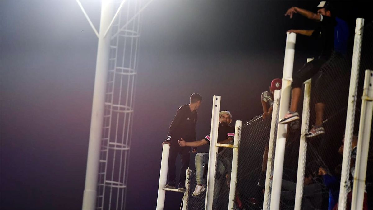 Tras el gol tatengue, sobre el final del partido, los hinchas del Ferro se subieron al alambrado obligando a la suspensión momentánea del partido mientras se escuchaba el grito de “que se vayan todos...”. Mirá el video.