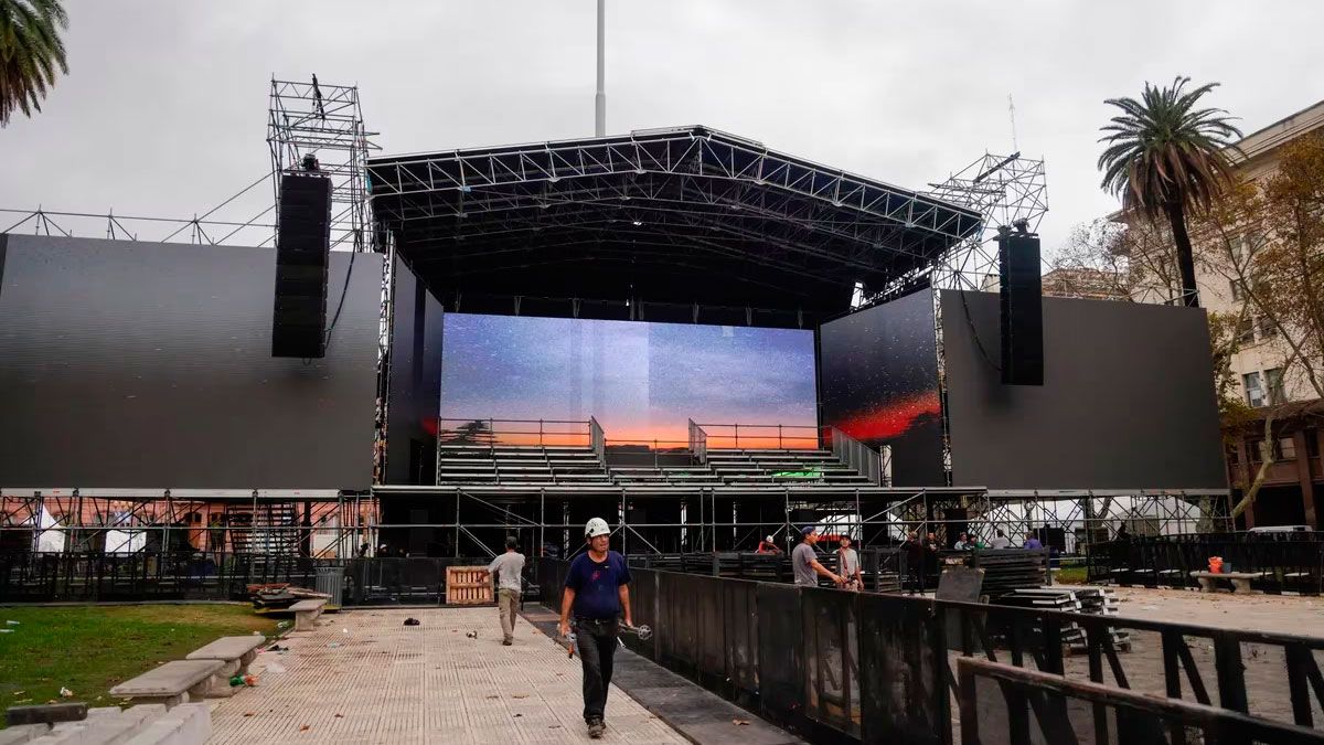 A horas de comenzar el acto por el 25 de Mayo, que encabezará Cristina Kirchner, ya se puede observar el impactante escenario, ubicado frente a la Casa Rosada.