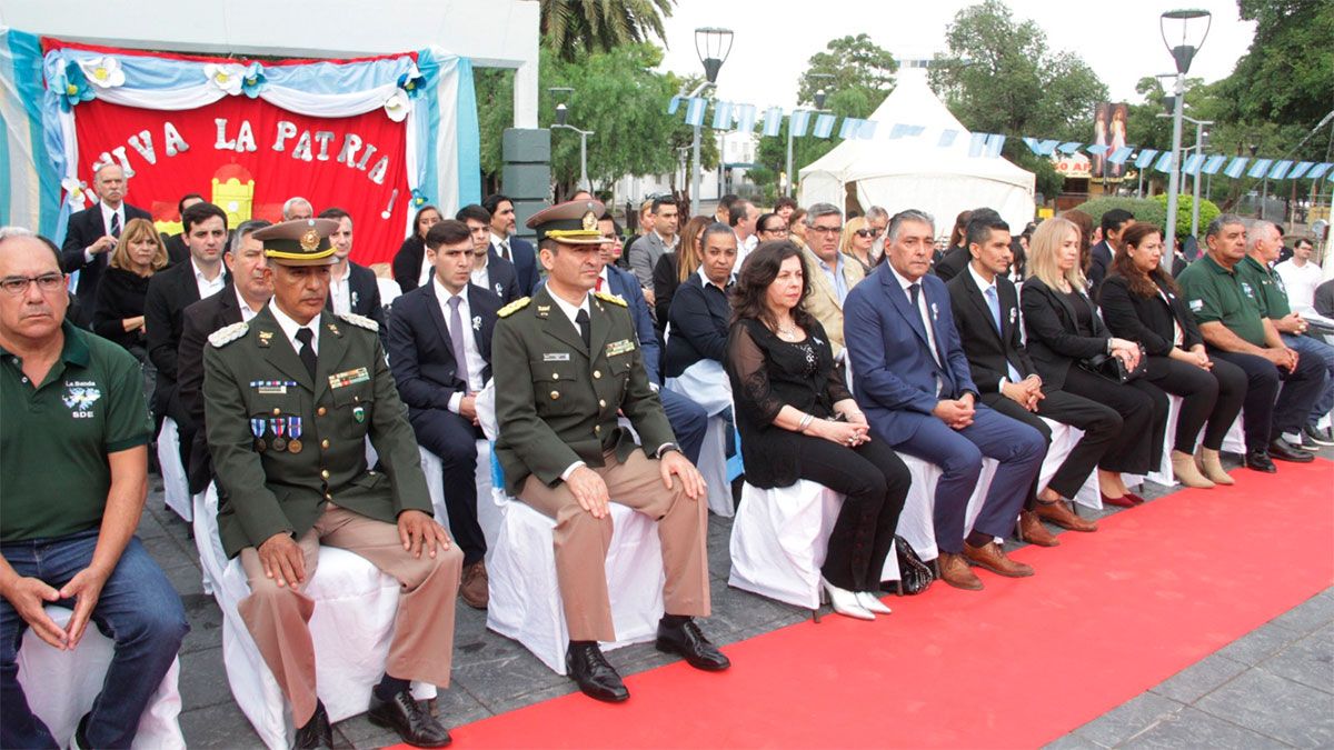 El acto protocolar fue presidido por el Intendente Roger Nediani y participaron autoridades del Ejecutivo Municipal, el viceintendente Gabriel Santillán; concejales; la diputada Provincial, Mariana Morales; la defensora del Pueblo, Claudia Acuña; miembros de la Agrupación 25 de Mayo de Gendarmería Nacional; Bomberos Voluntarios de La Banda; Veteranos de Guerra de Malvinas; delegaciones escolares; instituciones culturales e intermedias y público en general.