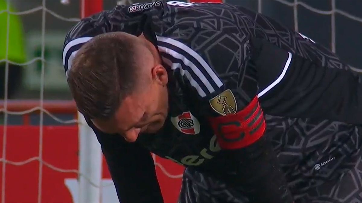 Luego del tanto, se pudo ver el lamento por parte del arquero santafesino, consiente de la imperiosa necesidad del equipo riverplatense de llevarse una victoria de Perú.